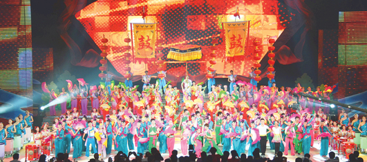 大型文藝晚會《風(fēng)起淮河》以“舞紅花鼓燈,建設(shè)新蚌埠”為主題,由“風(fēng)生水起花鼓紅”、“淮水風(fēng)情”、“華夏溢彩”、“五洲競放”、“好一個花鼓燈”等五個篇章組成,節(jié)目具有蚌埠獨(dú)特的標(biāo)識感,充分體現(xiàn)了“唱傳淮河文脈,解讀蚌埠新韻”的內(nèi)涵,全面展示了淮河風(fēng)情、民族特色、蚌埠情懷和時尚潮流。